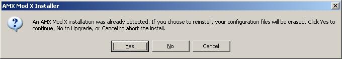 If you already have an AMX Mod X installation, you will be asked if you want to upgrade. This will preserve your configuration options.